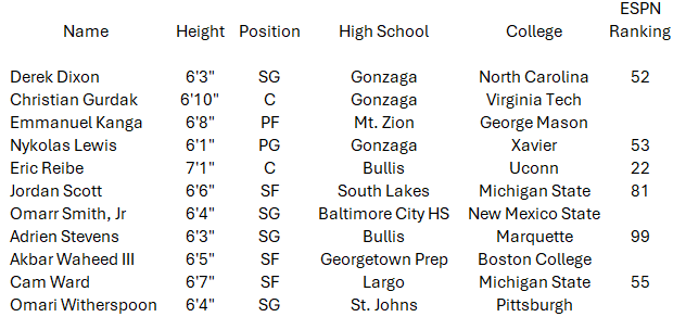 The U.S. Boys All-Stars roster and the rosters for the DMV Girls All-Star Game will be announced next week.